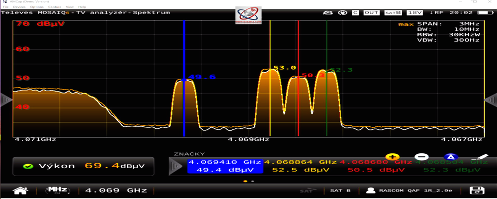 The published results of signal monitoring confirm that the Central European reception zone is undoubtedly covered by a stable high EIRP level on the carrier frequencies in the frequency range from 4068 to 4070 MHz, and in terms of day/night comparison, it remains almost constant, showing only minimal intensity oscillation.