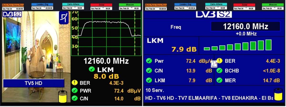 V závislosti od výberu konkrétneho časového úseku v rozpätí od 00:00 do 04:00 v noci,amplitúda kvality dosahuje svoje maximá od MER=15-15,9 dB, konkrétne od 2:29 do 2:34 CET dňa 25.2.2024 špička kvality atakovala úroveň MER=15 dB + video dôkaz