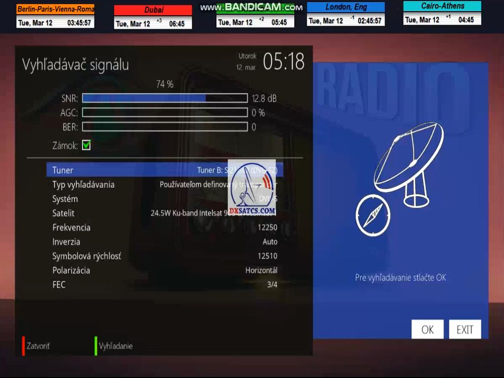 DE_Der Autor Roman Dávid ist der Erste in Europa,der mit einem gegebenen Reflektordurchmesser an einem spezifischen geografischen Punkt in Mitteleuropa und in der Verifizierungseinheit der Überwachung für t=72 Stunden zweifelsfrei die Erreichung eines stabilen Einkommens von 100% ohne einen einzigen Ausfall in der Kontinuität des Schlosses auf der überwachten Frequenz f=12 250 MHz des Satelliten Alcomsat 1-24,8°W nachweisen konnte.