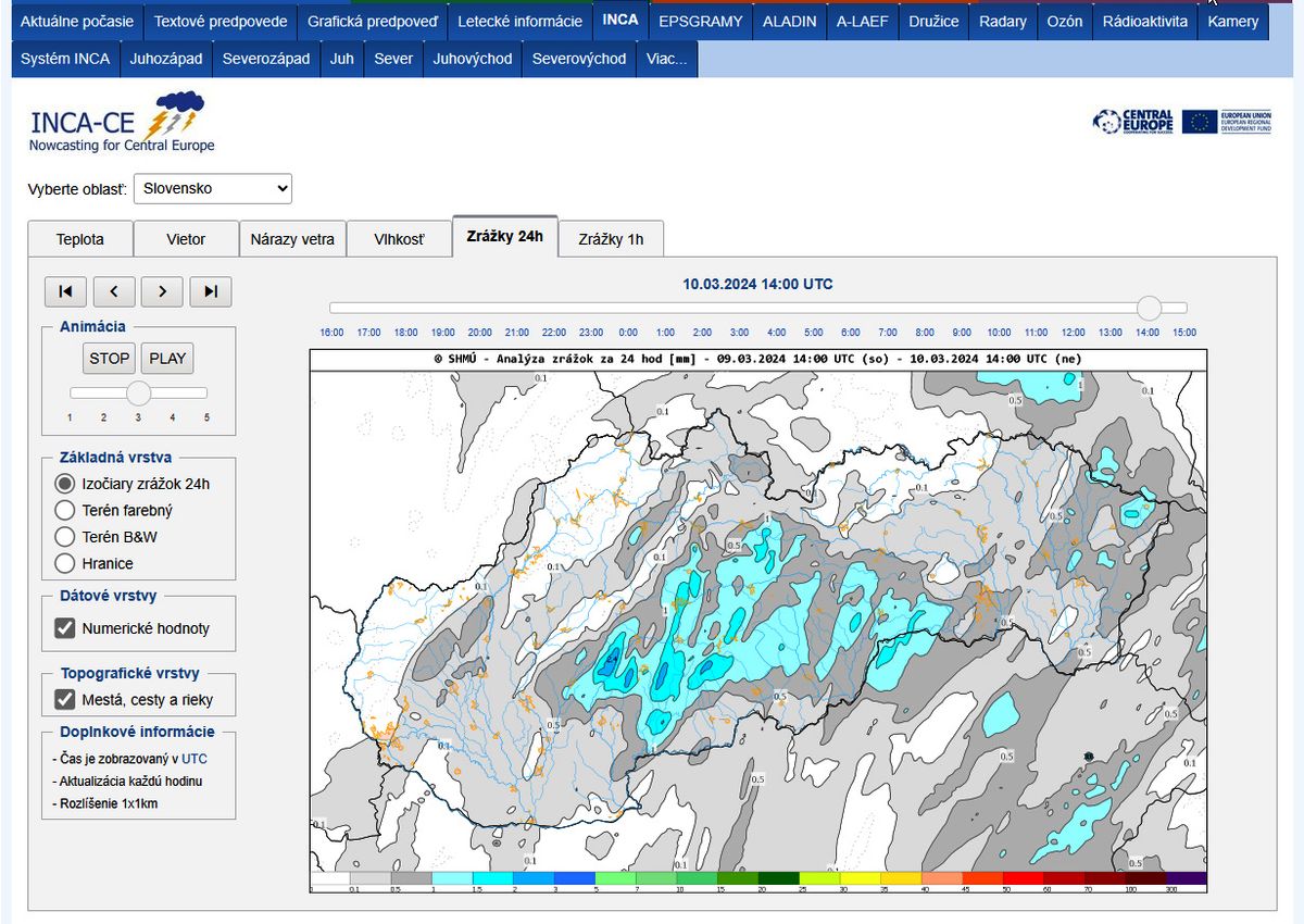 10.3.2024 _ 11:00 SEČ                           INCA/SHMU.sk_zrážky za 24h