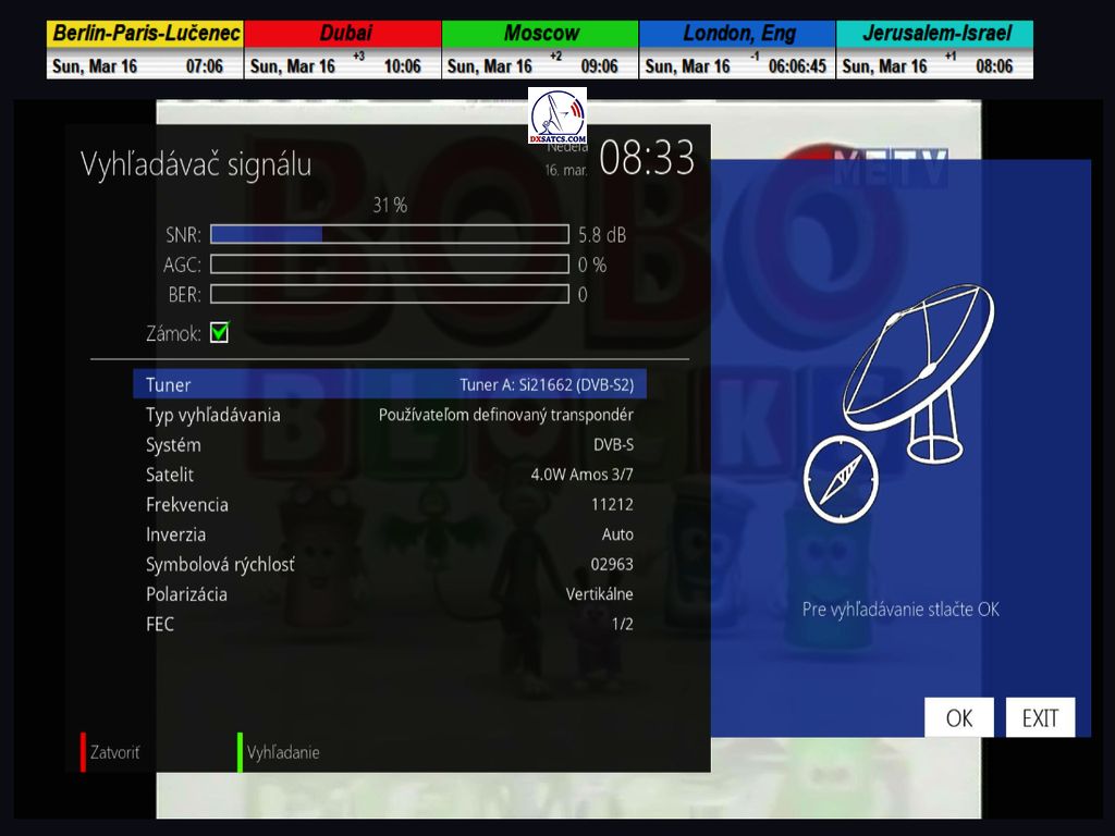 ►SK_Autor Roman Dávid a jeho vedecko-výskumné centrum dnes uverejňuje ako prvý v Európe nespochybniteľné výsledky analýz dosiahnutej kvality a hlavne stability príjmu 99,99% TV nosnej METV na f=11 212 MHz_V z dužice Amos 3,ktoré sú verifikované a dokázané jednotkou signálneho