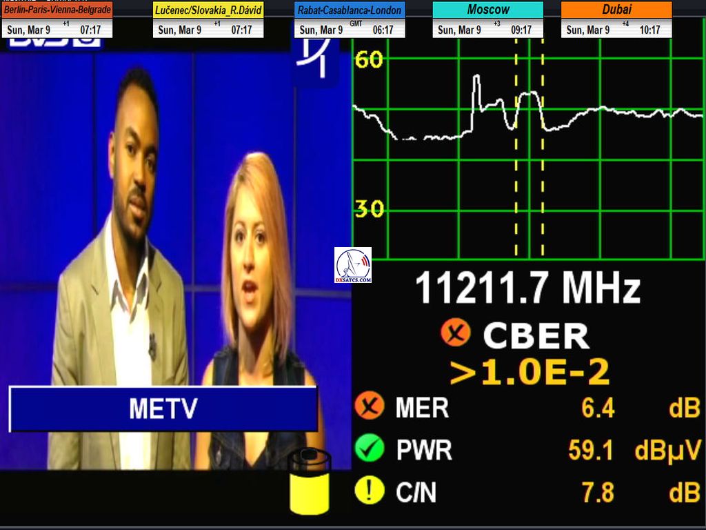 v dĺžke minúty maximálne jednotky hodín denne čo samozrejme nikto príčetný nemôže pomenovať označením príjem ako taký.V mojom prípade sú moje tvrdenia o stabilite príjmu na viac ako 99,99% nespochybnitelne verifikované,alebo dokázané v signálnom monitoringu s dostatočnou jednotkovou dĺžkou t=72 hodín a na základe týchto výsledkov môžem tvrdiť že jediným negatívnym faktorom,ktorý krátkodobe a typicky len na jednu sekundu degraduje môj dokázateľne stabilný satelitný príjem METV na f=11 212 MHz je sekundová pixelácia,alebo zamrznutie streamu,nič viacej,aj to pri typicky zhoršených poveternostných podmienkach bez čo i len jedného výpadku v kontinuite Locku nosnej. Následne pomenujem a dokážem výskyt výkonovej anomálie ktorá sa takmer 8 dní opakoval každý deň v rovnakom čase od 13:35 do 13:42 CET.