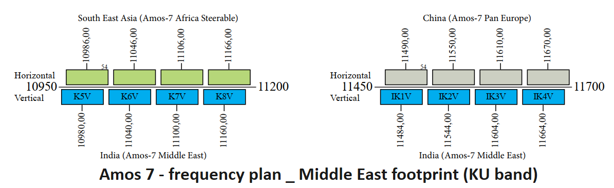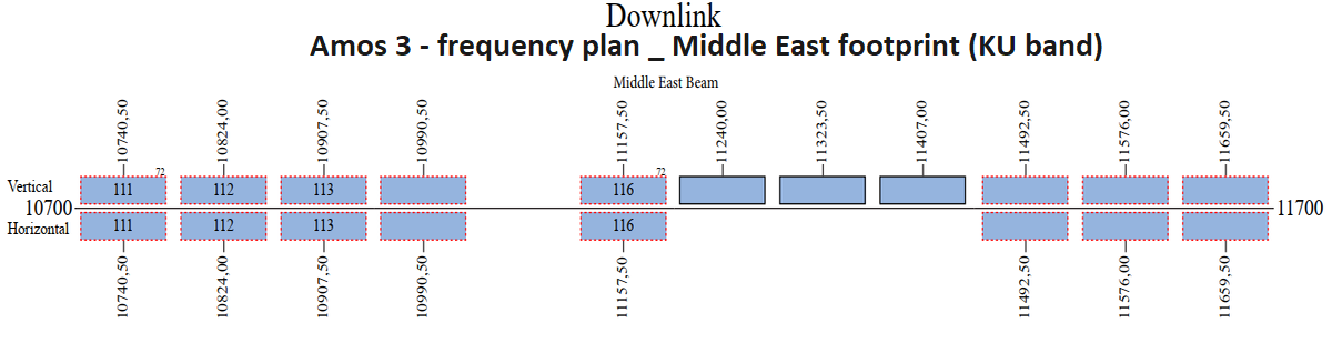 AMOS 3/ME downlink :10 700 - 11 700 MHz _linear V+H AMOS 7/ME downlink : 10 700 - 11 750 MHz_linear V+H