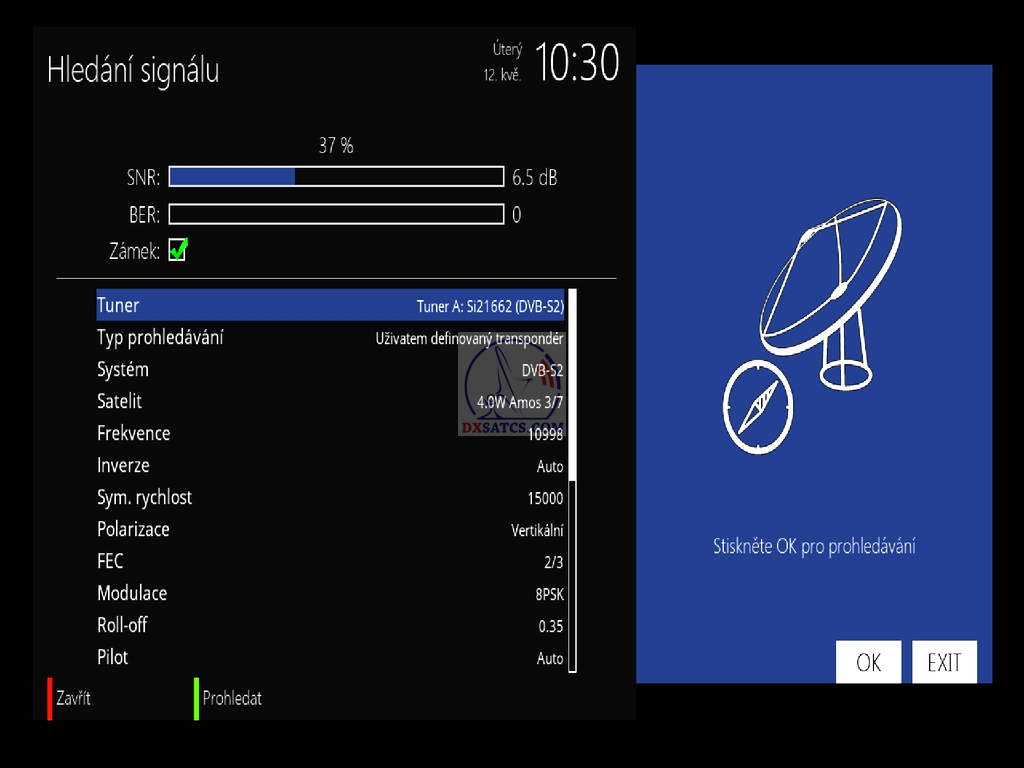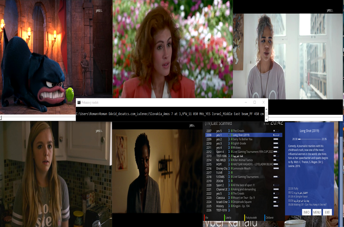 prenosu vo frekvenčnom spektre v definovanej zemepisnej polohe,na súčastnú a zároveň vôbec prvú demonštráciu uzamknutia a kvality príjmu nosnej izraelského tv paketu YES na f=11 554 MHz,ktoré kontinuálne,čiže bez výpadkov v možnosti uzamknutia,trvá od približne 6:00 ráno,už