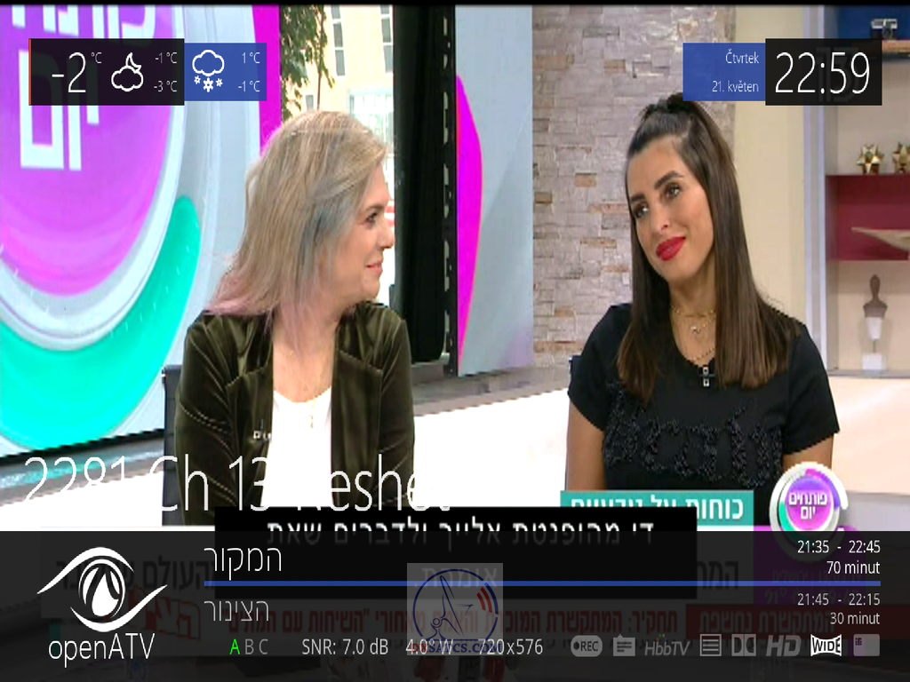 v hebrejskom jazyku,v dĺžke od jednotiek minút až do desiatok hodín + video ukážky (aktivita a čas spustenia SNG/DSNG feeds kanálov