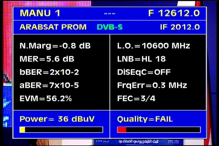 Arabsat 2B at 30.5°E - KU footprint : 12 608 V feed IMN Media Iraq