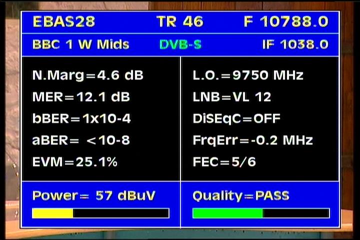 Astra 2D at 28.2°E - H+V_North footprint : qualitative analysis of the reception the BBC television network, ITV, SKY