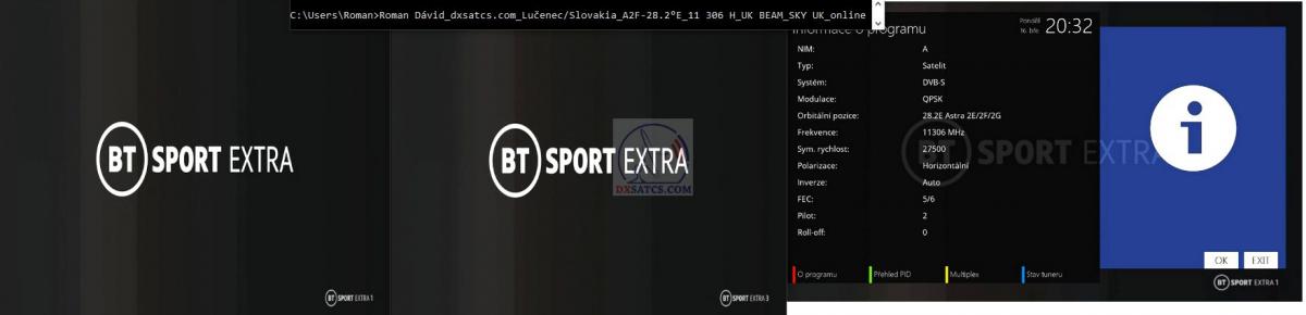 na transpondéte TP č.34 @ f=12 363 MHz v britskom vyžarovacom lúči geostacionárneho objektu Astra 2F.