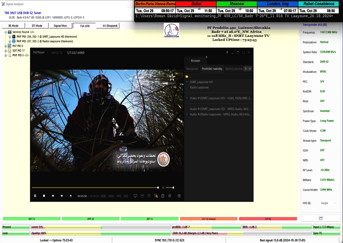 ►+28 hodín _ Priebežný stav v signálnom monitoringu dňa 27.10.2024 a online video ukážky z vysielania