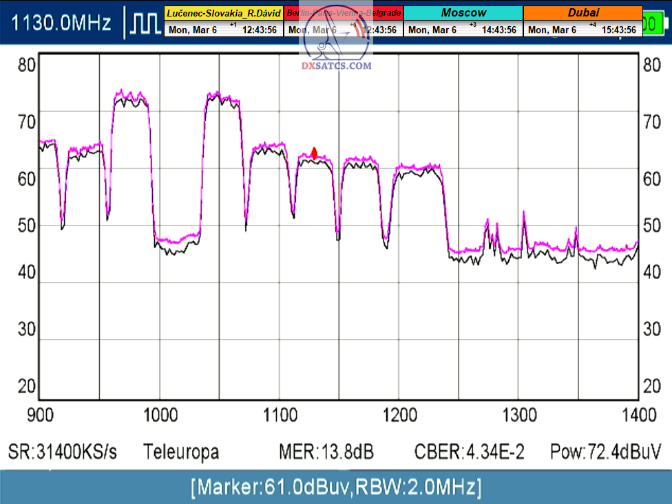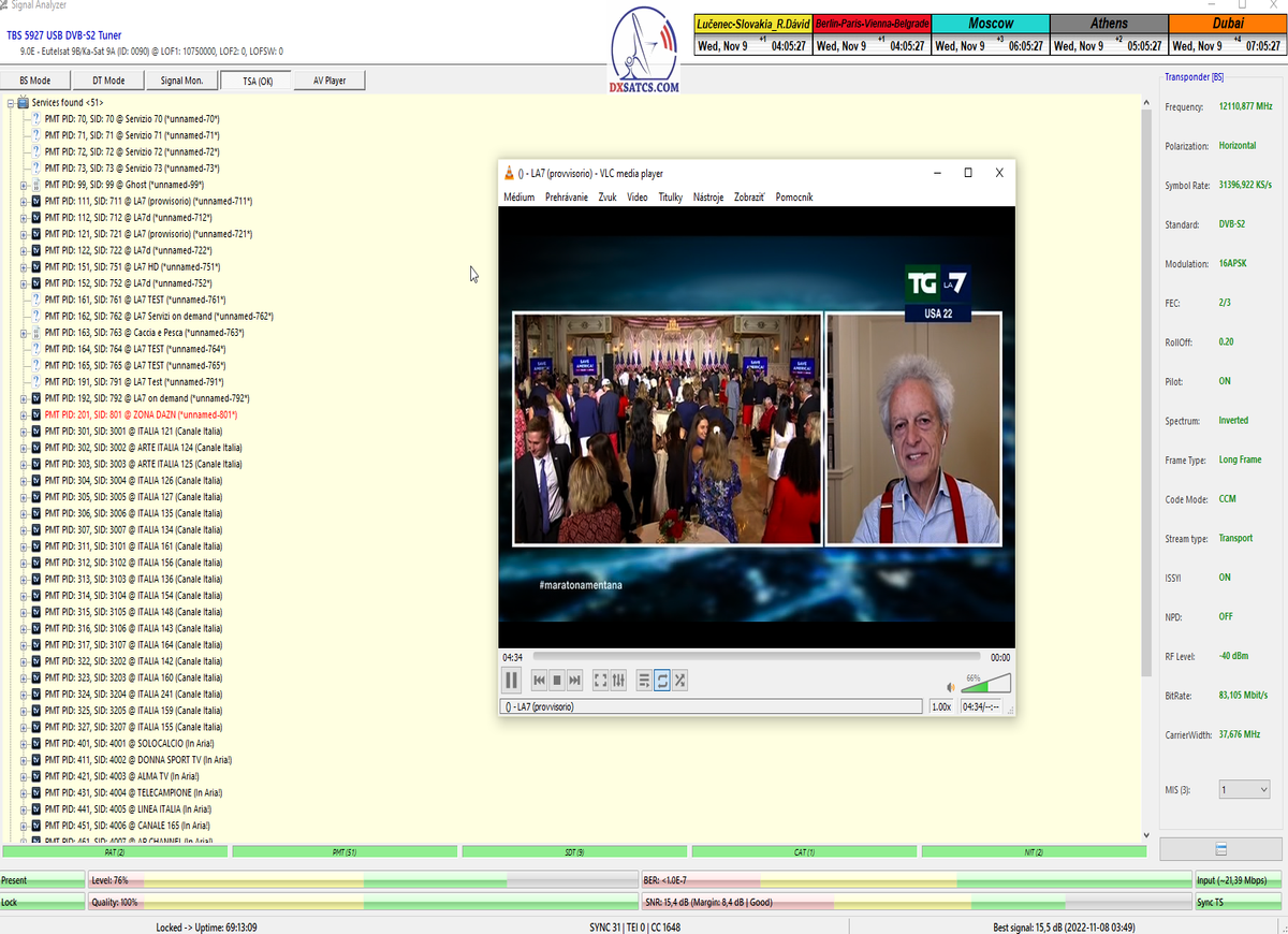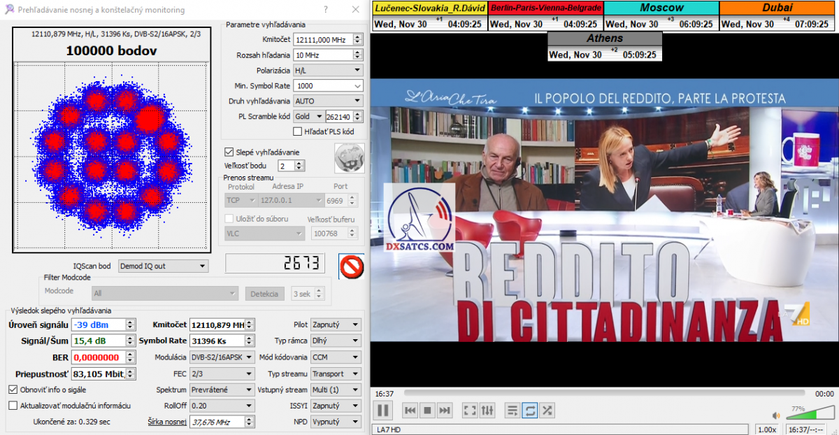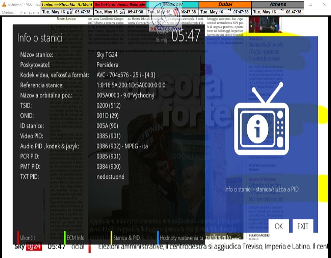 s verifikáciou stredoeurópskeho času v TV vysielaní,napríklad v SKY TG24,pretože to je dôkazom o reálnosti signálnej kvality,ktorú som v meste Lučenec dosiahol.Ak by niekto spochybňoval hladiny SNR zo samotného SW EBSpro,potom na dôkaz vyvrátenia týchto pochybností ponúkam ďalšie 3 signálne zdroje ako napríklad analyzátor Metek HD,4K receiver Octagon,SW CrazyScan a pochybnosti všetkého druhu sú razom blízke alebo rovné NULE. Ospravedlňujem sa za môj slovník určený pre publikum s určitou mierou "mentálnej invalidity alebo mentálneho postihnutia",ale občas je vhodné zopakovať si aj elementárnu abecedu,pretože nie každý čitateľ pochádza z odbornej alebo vedeckej sféry a moje vysvetlenie smerujem aj do radov takzvaných