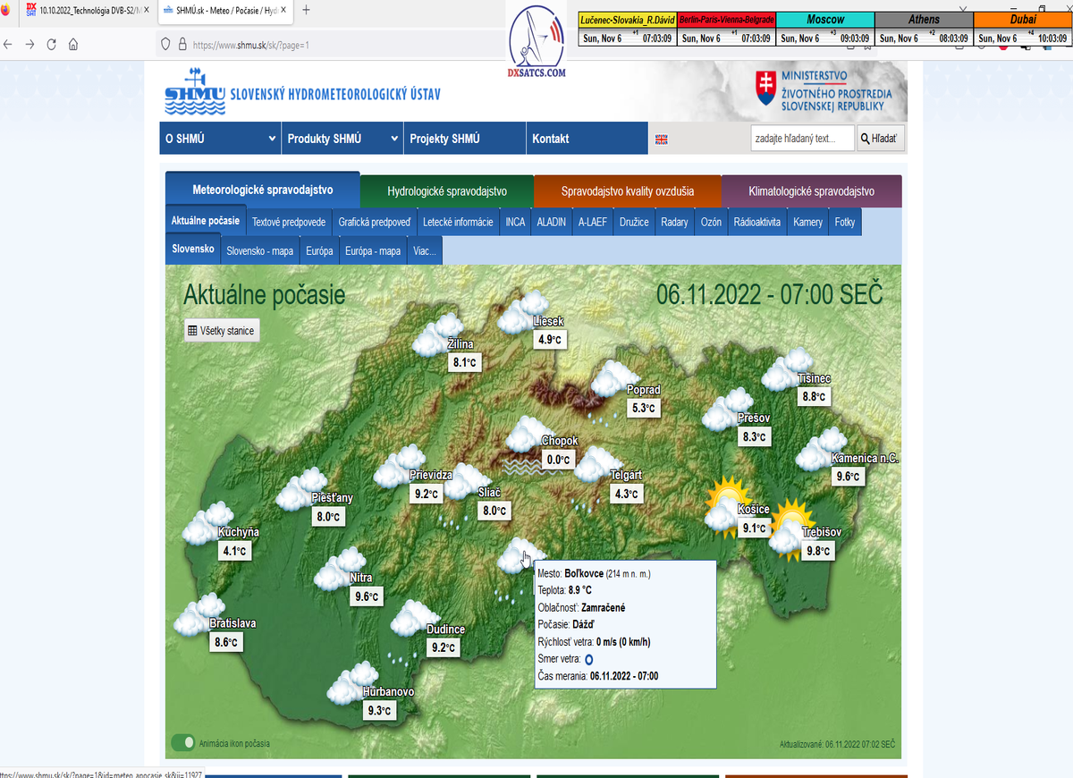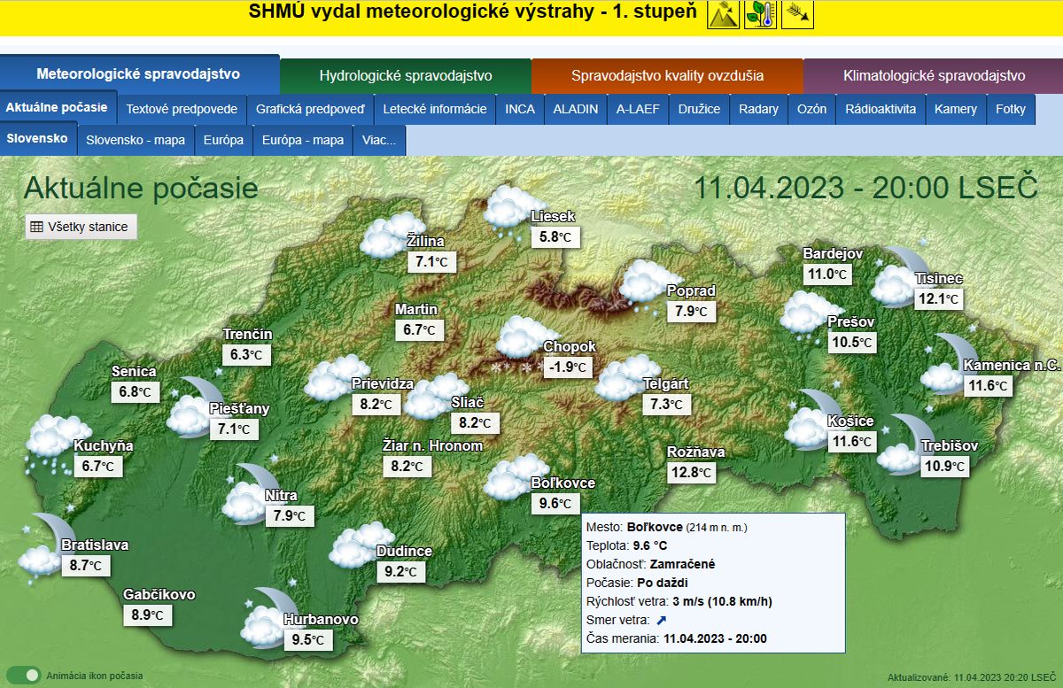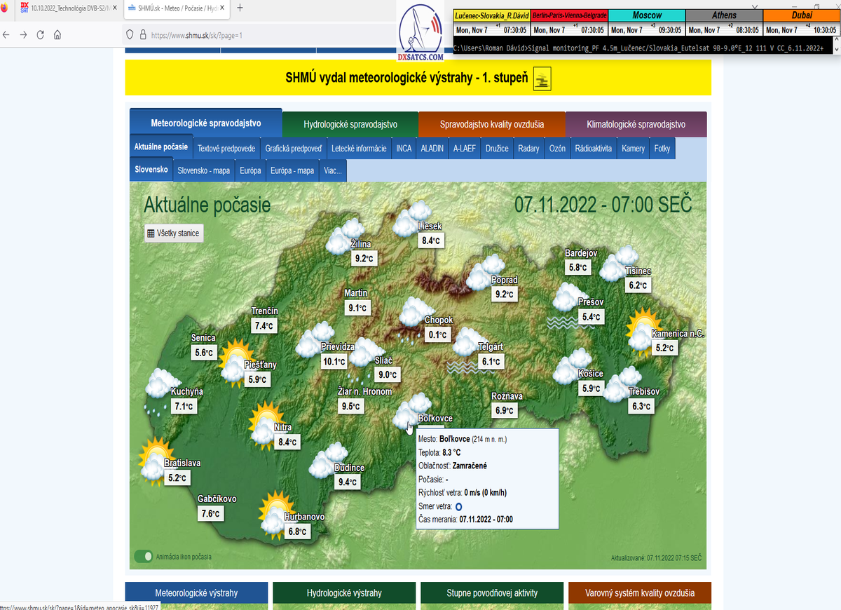 -o 7:00 ráno dňa 7.11.2022 boli publikované prvé dáta o aktuálnych poveternostných podmienkach z shmu.sk : Takmer zamračené 8/8