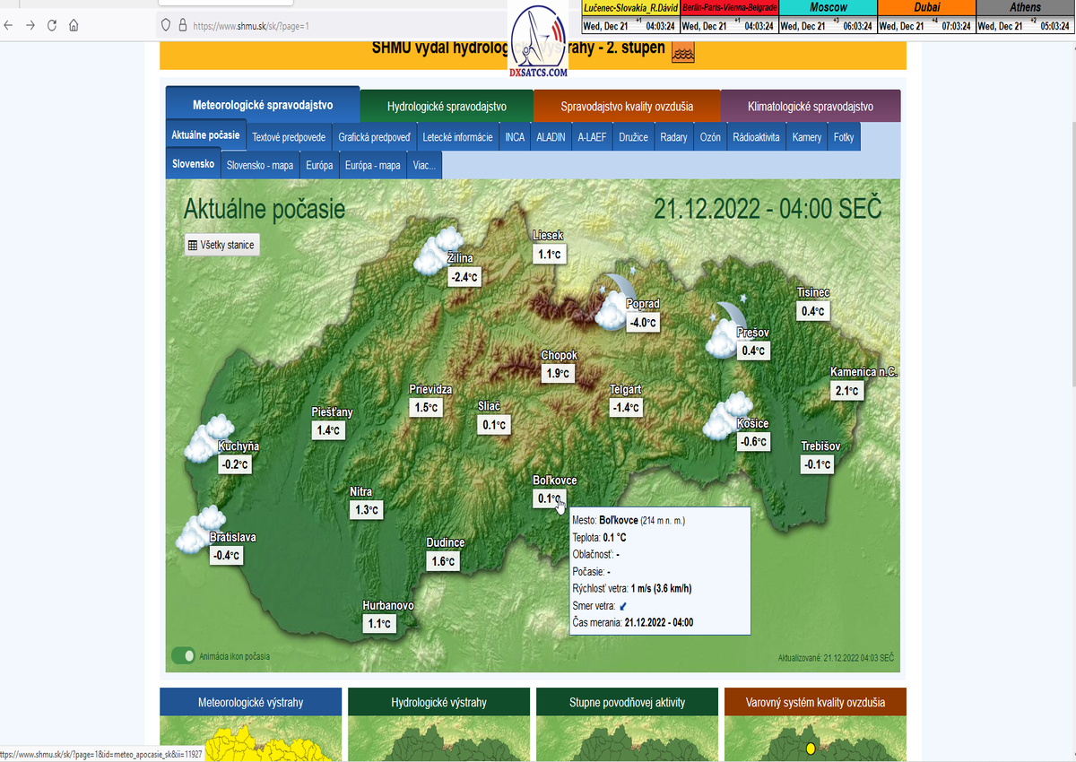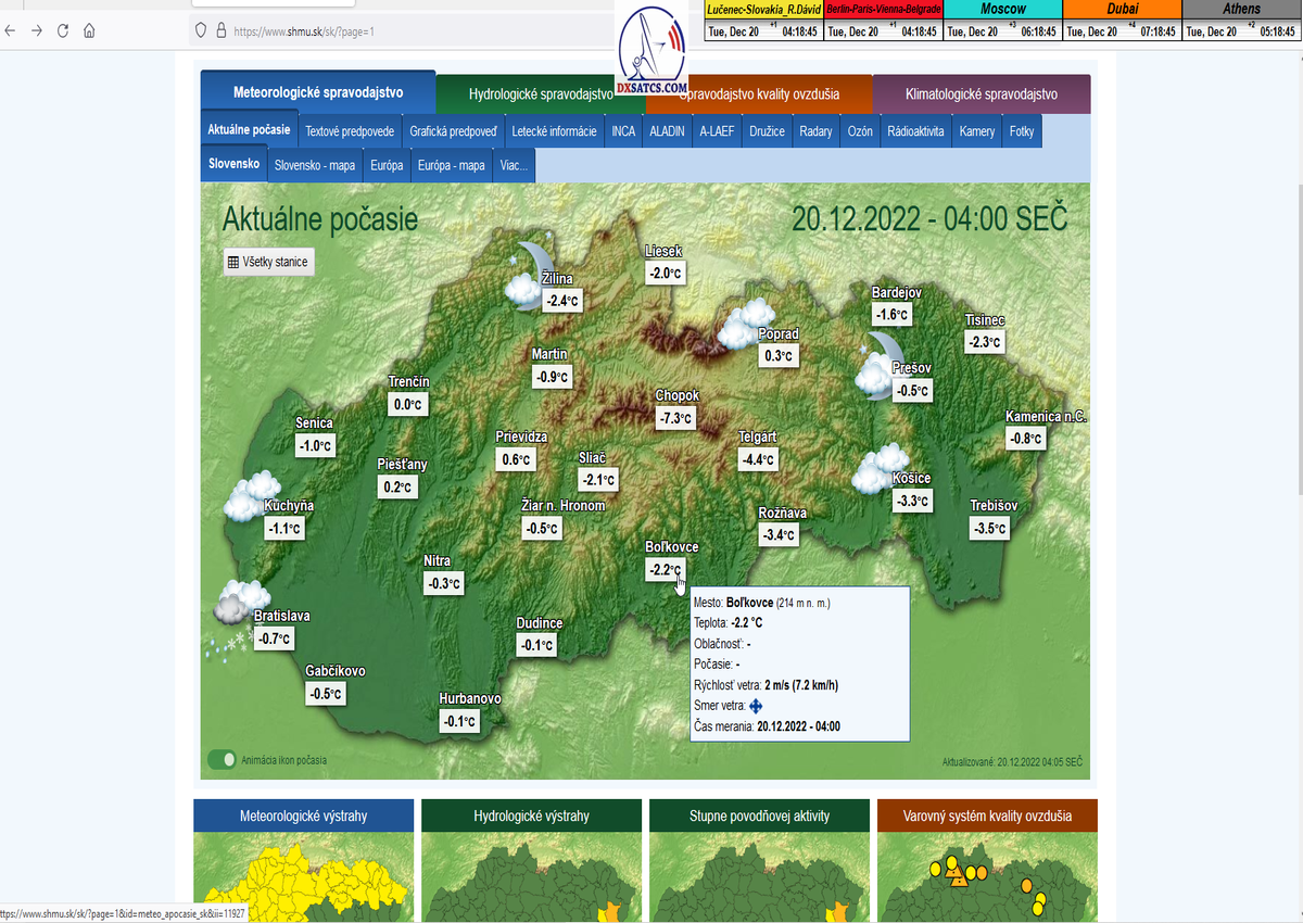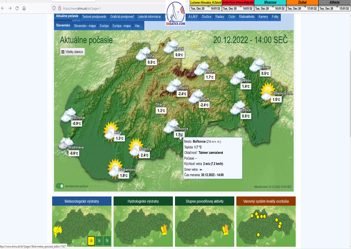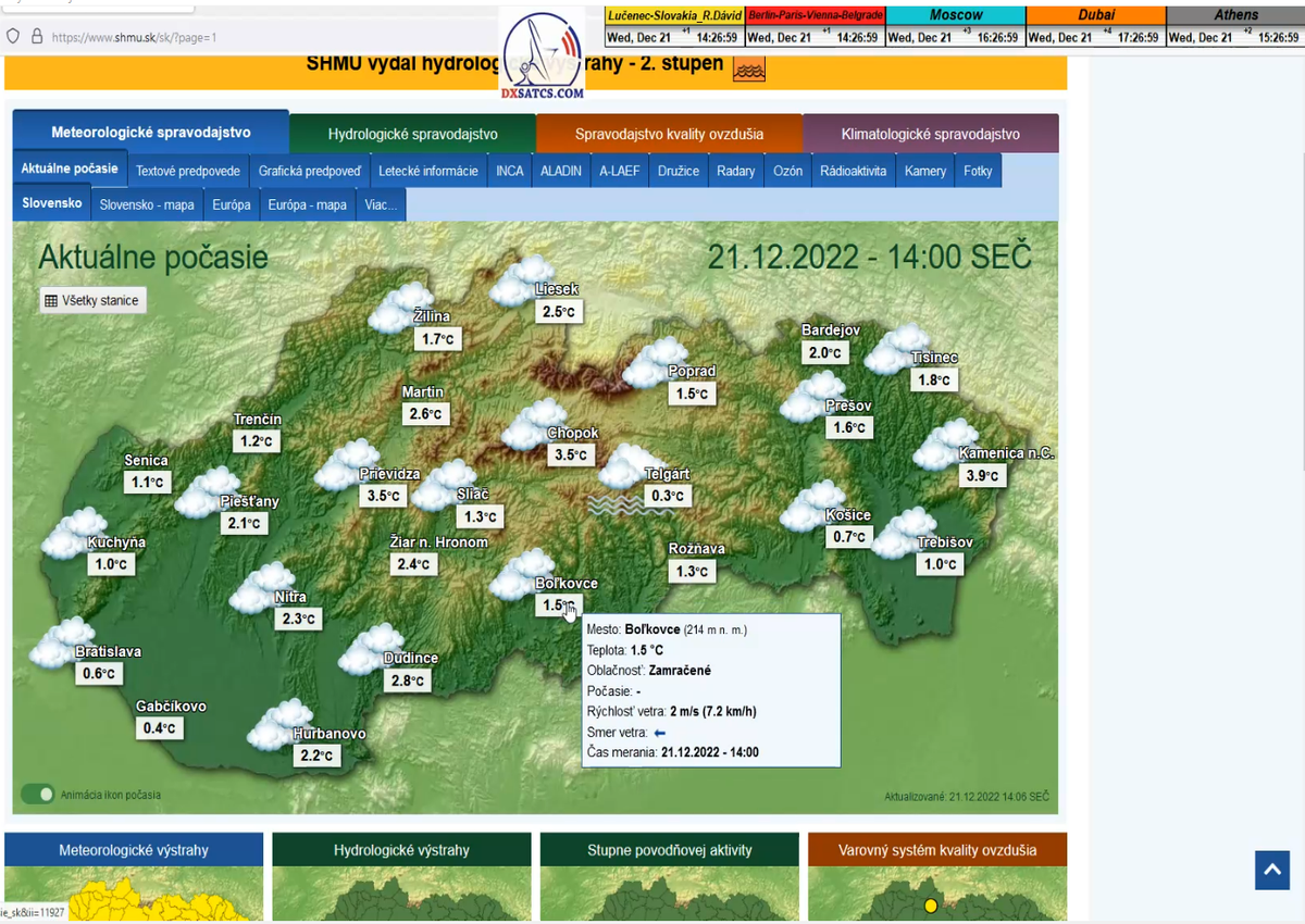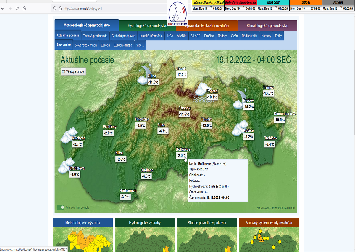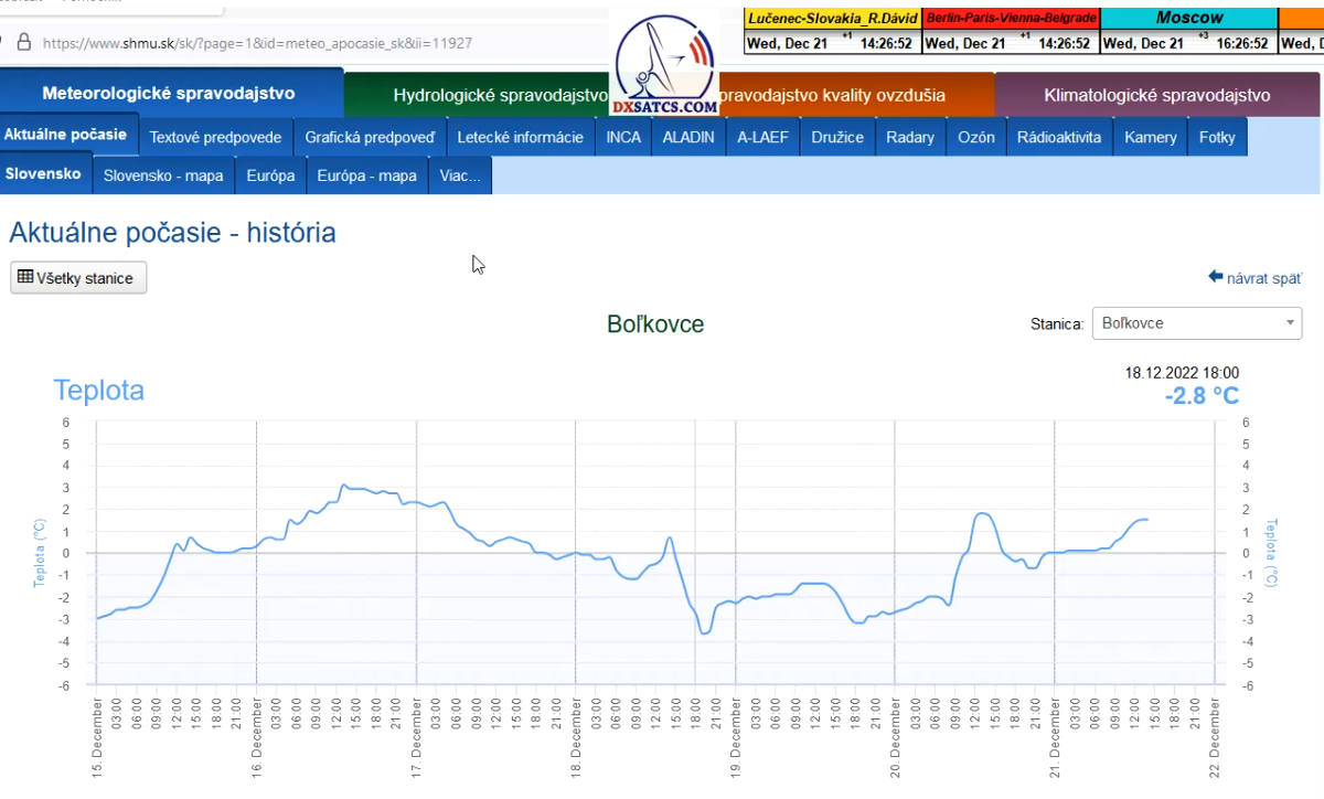 -A- : Začiatok signálneho monitoringu dňa 18.12.2022 o 13:40 SEČ a aktuálna poveternostná situácia