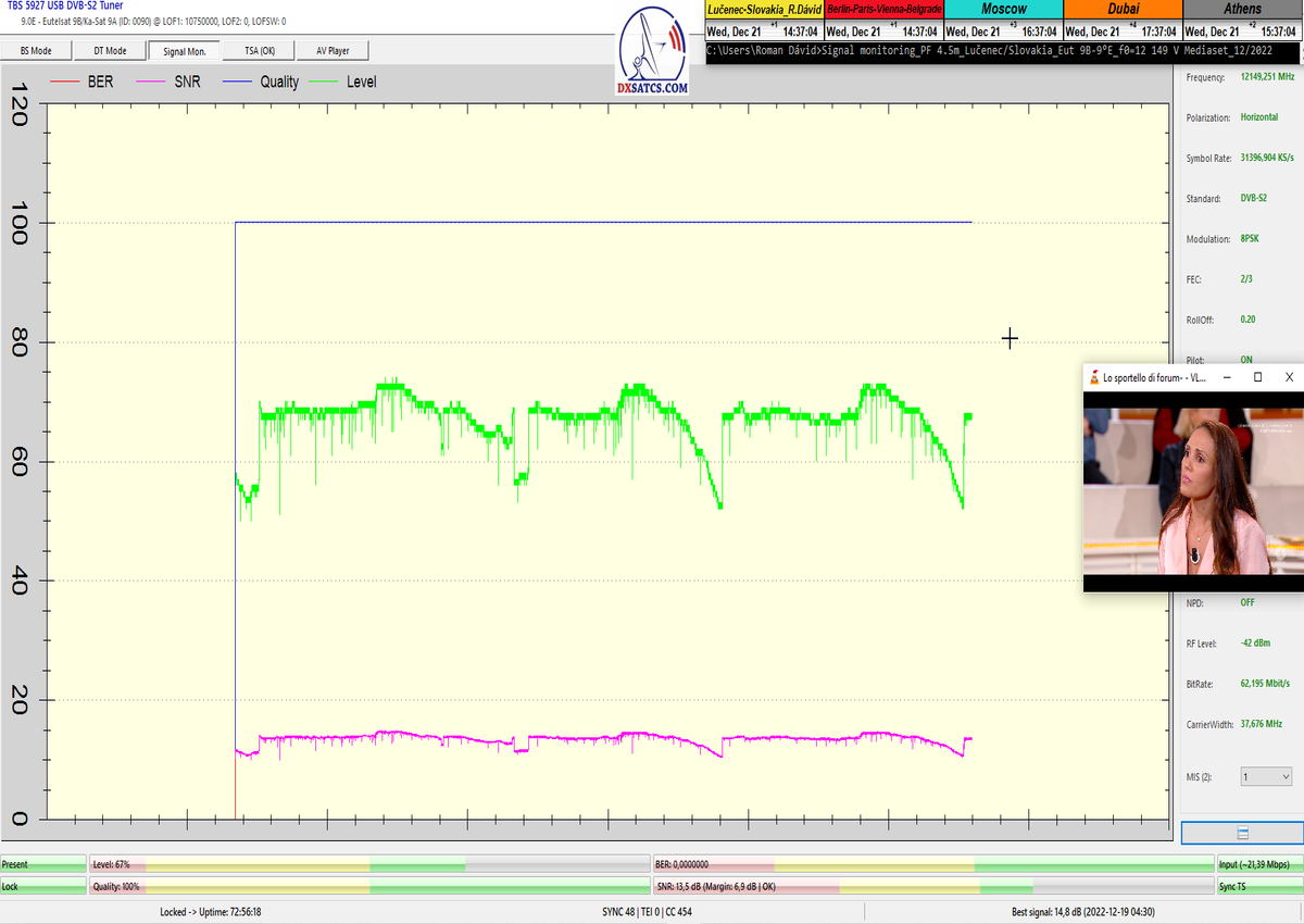 špičku kvality pri SNR=14,6 dB o 03:56+ SEČ dňa 21.12.2022_rezerva v kvalite osciluje okolo 8 dB + online video dôkaz