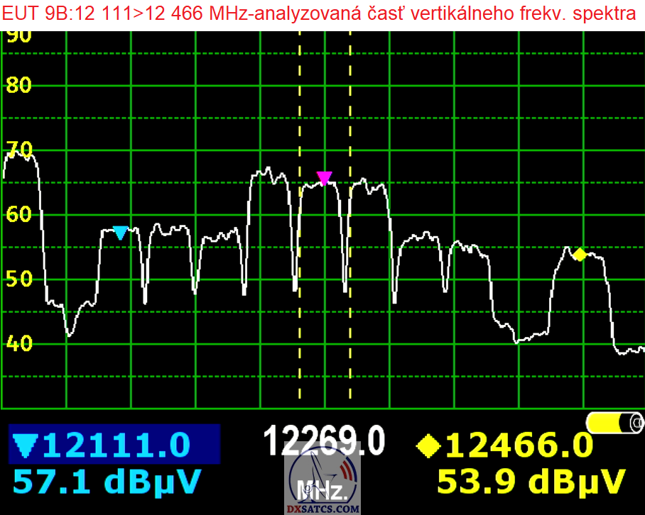 | Analyzed frequency spectrum + polarisation | 12 111 - 12 466 MHz , linear -V- |