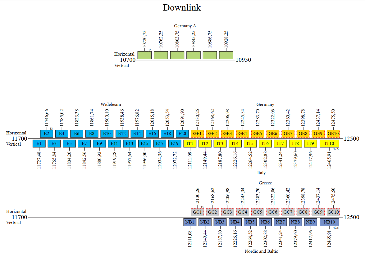 Italy downlink coverage KU_Nordic & Eastern Europe dw. coverage KU_Wideband downlink coverage