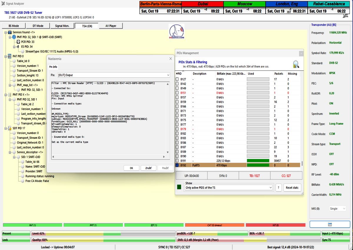 ►►Eutelsat 21B at 21.5°E-Western-11 604,500 MHz-Radio Oujda : Statistics of PIDs in the TS and HTTP Stream reader