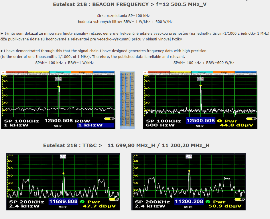 DE :Das wissenschaftliche und Forschungszentrum des Autors Roman Dávid aus Lučenec, das sich auf 'Out of footprint' Satellitenempfangszonen auf www.dxsatcs.com konzentriert,ist nachweislich das erste seiner Art weltweit,dessen Ergebnisse in keiner Weise angezweifelt werden können. Dies liegt daran, dass es seit dem Jahr 2020 ein methodisch definiertes Verfahren zur Messung und Datensammlung aus kontinuierlicher Signalüberwachung mit ausreichender Dauer implementiert hat,wie vom Autor definiert.Das methodische Verfahren,das vom Autor Roman Dávid definiert wurde,schließt klar jede Verbindung der erzielten Ergebnisse mit Erwartungen an sporadisch auftretende Leistungsspitzen oder temporäre atmosphärische Phänomene aus,die vorübergehend eine instabile Form des Satellitenempfangs ermöglichen,die in die Kategorisierung von Zufall oder 'SAT DX' fällt.Während alle Diskussionszentren weltweit bereits seit über 30 Jahren einer pseudowissenschaftlichen Antimethodik der Messungen folgen,deren Ergebnisse sofort als Ganzes in Frage gestellt und als irrelevant oder sogar überflüssig bezeichnet werden können,handelt das wissenschaftliche Forschungszentrum von Roman Dávid als erstes und einziges auf der Welt nach einem methodischen Messverfahren,das unbestreitbare Ergebnisse liefert,die für weitere wissenschaftliche und Forschungstätigkeiten im Bereich des Satellitenempfangs verwendet werden können.Die Darstellung der Trägerverriegelung im Frequenzspektrum während dynamischer und dauerhafter Änderungen in der Leistungsintensität in diesen Empfangszonen hat selbstverständlich keinerlei wissenschaftlichen Wert,da die Qualität bereits die nächsten Sekunde,Minute,Stunde ... nach der Trägerverriegelung auf null sinken kann,was die gesamte Präsentation dieser Pseudoanalyse im Wesentlichen nutzlos und betrügerisch macht.