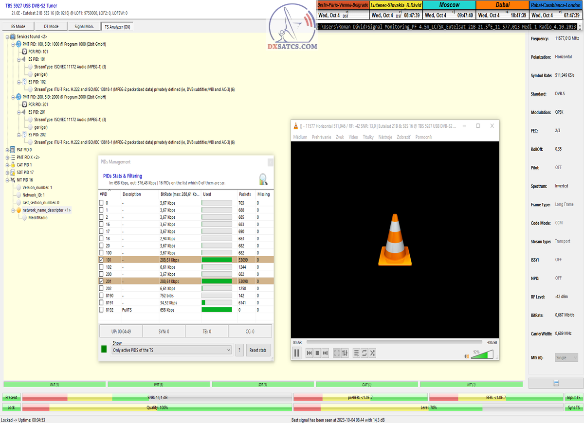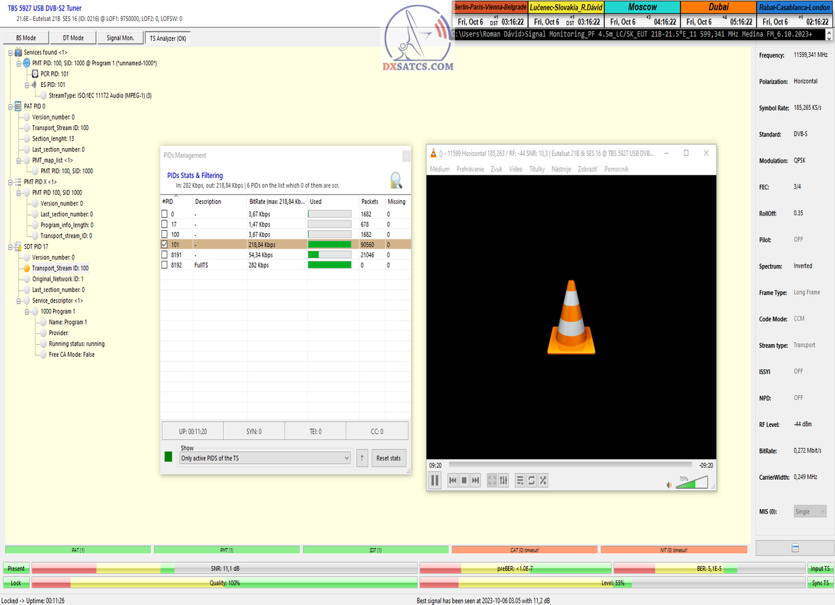 I intentionally doubled the monitoring quantity for the Medina FM radio transmission at an applied rate of SR=185 Ksym/s in order to prove full reception stability
