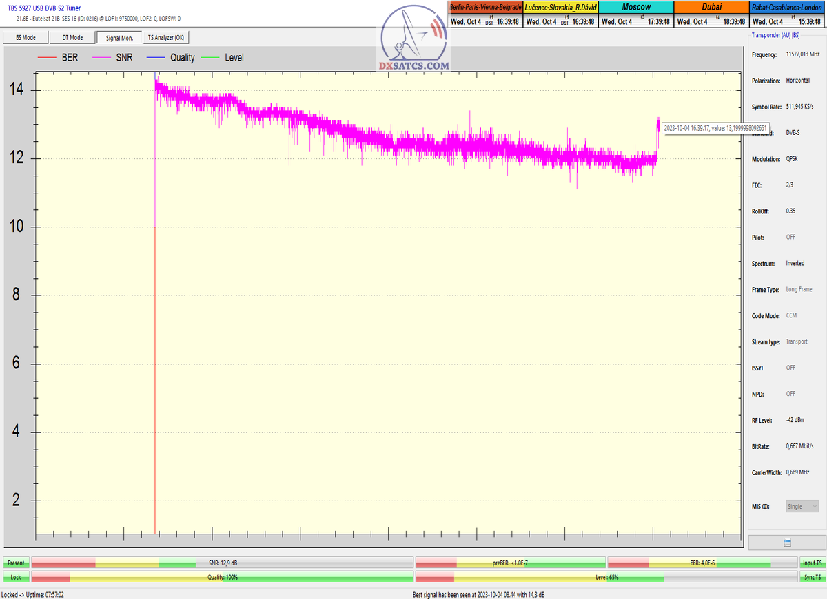 pre štandard DVB-S/QPSK,čiže nedokáže zamknúť ani jednu dnes analyzovanú nosnú zo spektra TP DW7,čo znamená že zobrazované