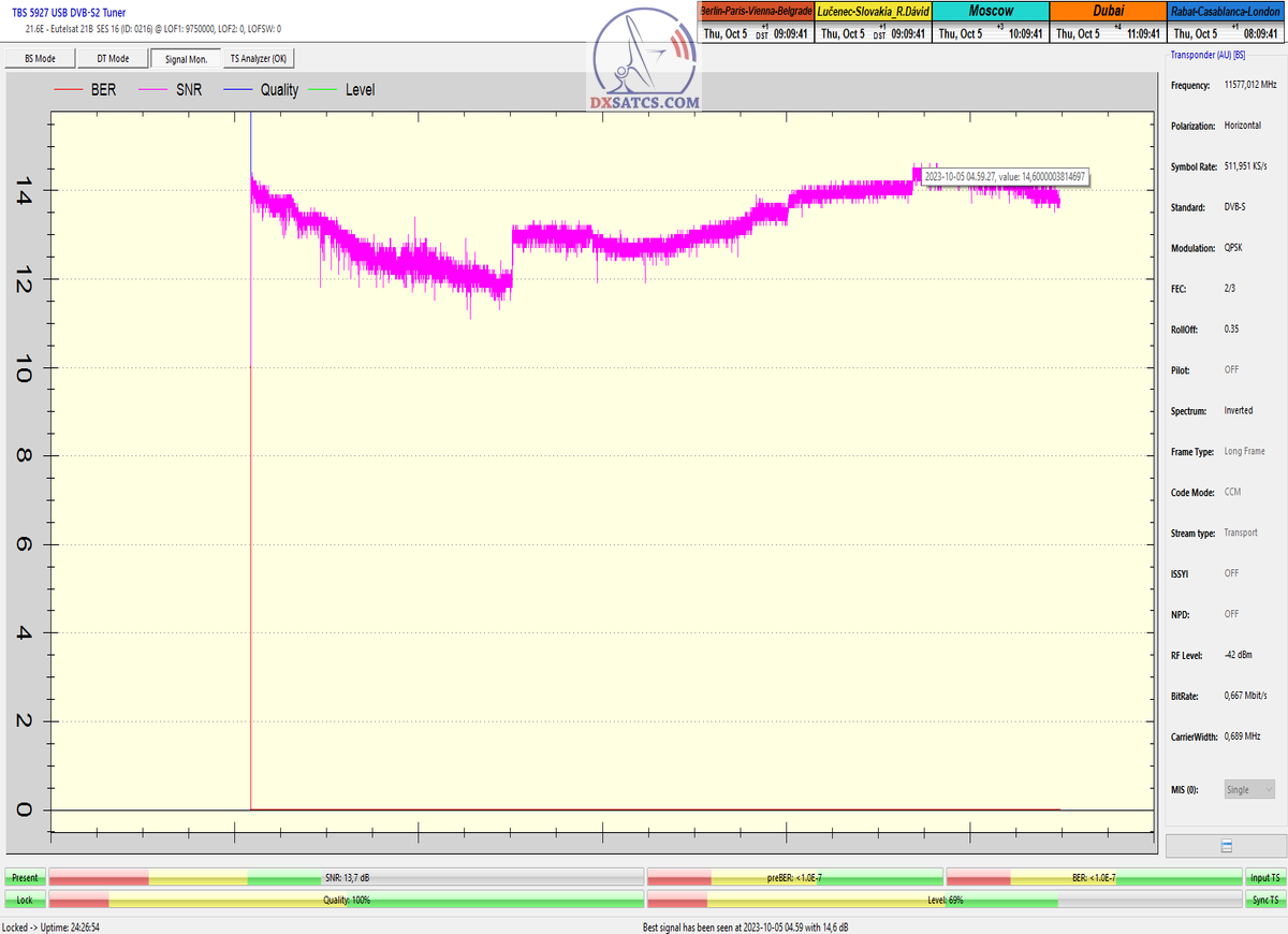 TBS 5927+EBSpro >>> SNR peak=14,6 dB
