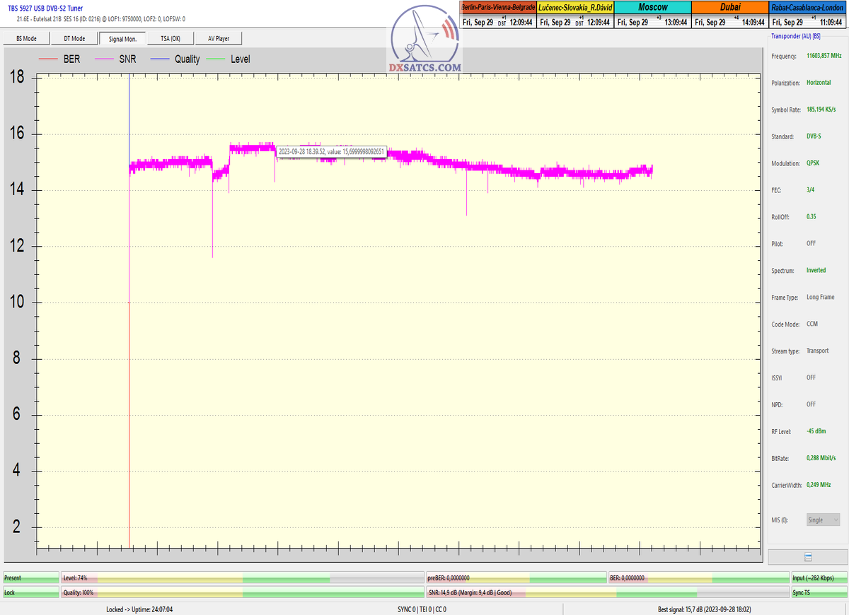 ►►Eutelsat 21B at 21.5°E-TP DW 7-Western: Continuous signal monitoring / Nepretržitý signálny monitoring