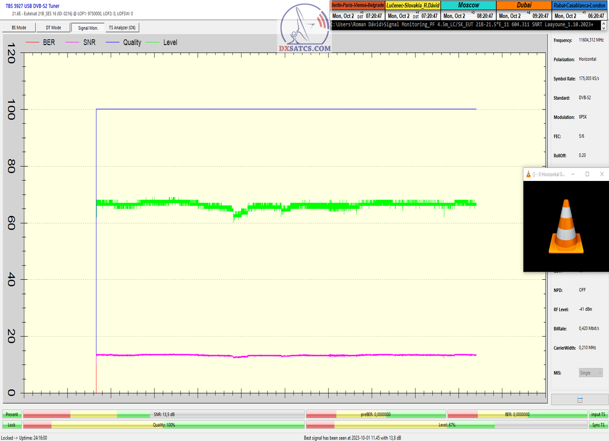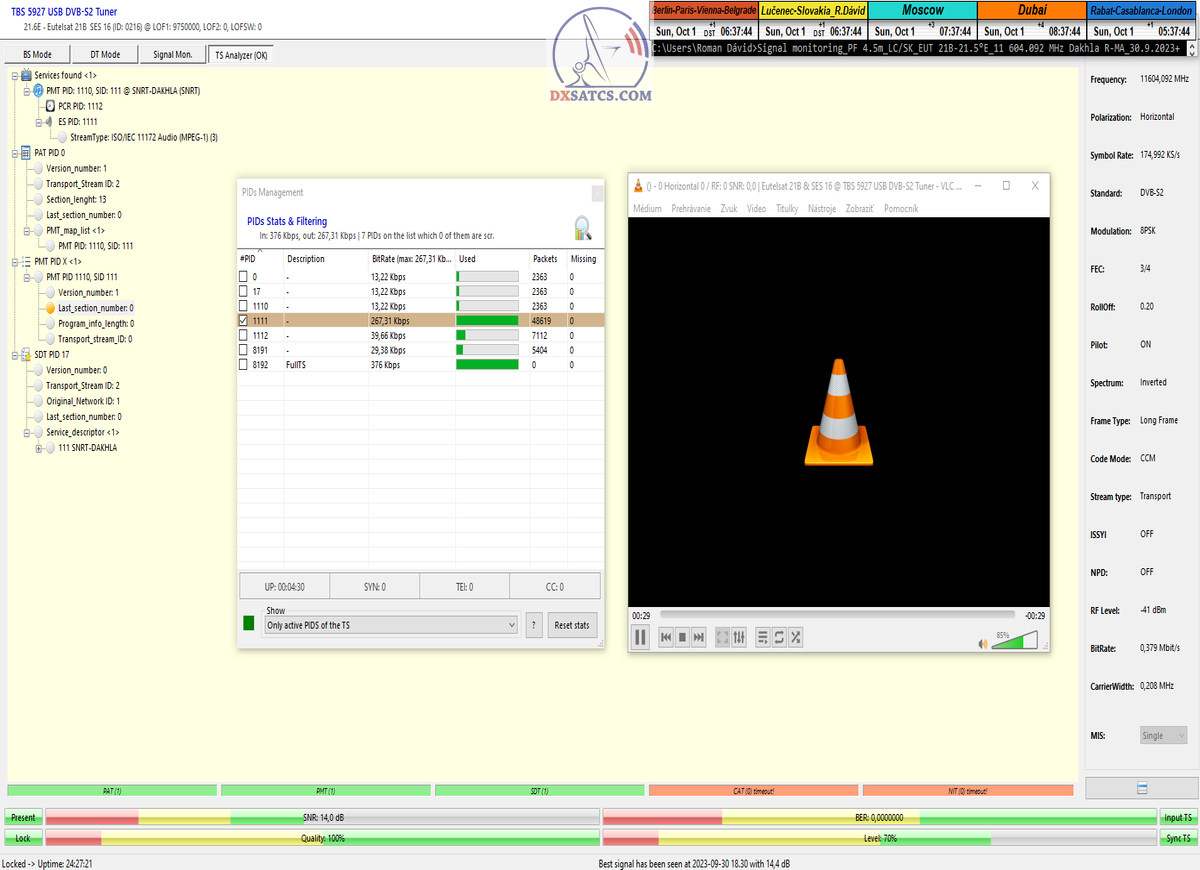 ďažďových prehánok dňa 30.9.2023 pri monitoringu rádio prenosu SNRT Dakhla s SR=175 Ksym/s.Zámerne som kvantitu monitoringu zdvojnásobil