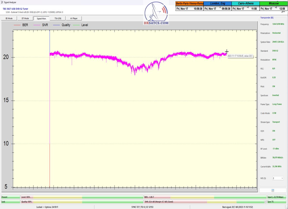 SNR peak(24 hours) =20,7 dB : TBS 5927 & EBSpro