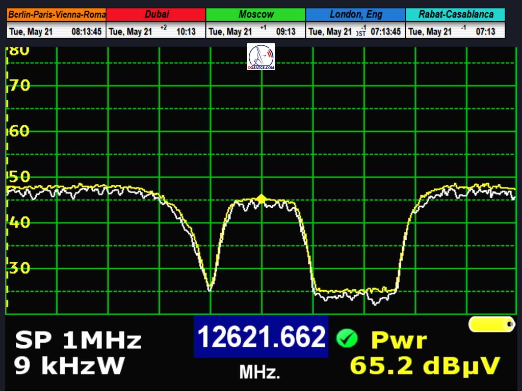 ►►Eutelsat 8 West B at 8.0°W-European beam-spectrum analysis : 12 621.662 MHz Radio Tendance Ouest