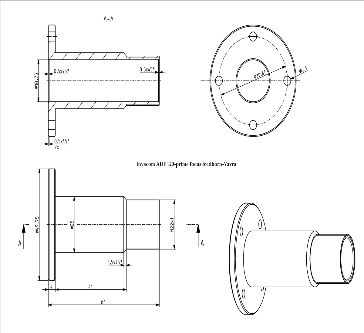 a,Feedhorn Invacom ADF-120_dimensions: Rozmery ožarovača pre stredové antény