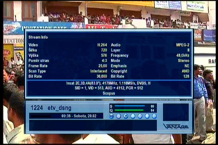 Insat 4A at 83.0°E - 4A footprint : feeds_4 179 H ETV DSNG _ SR=1 110 kSymb/sec