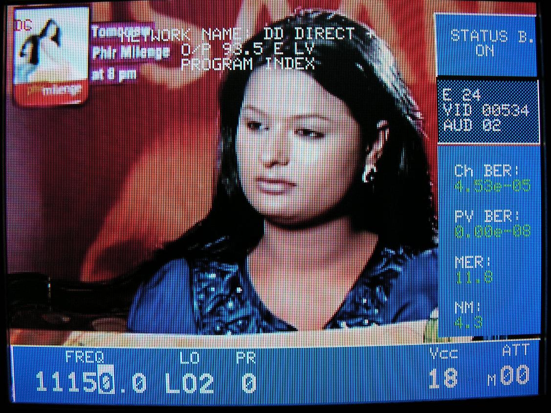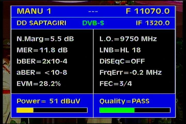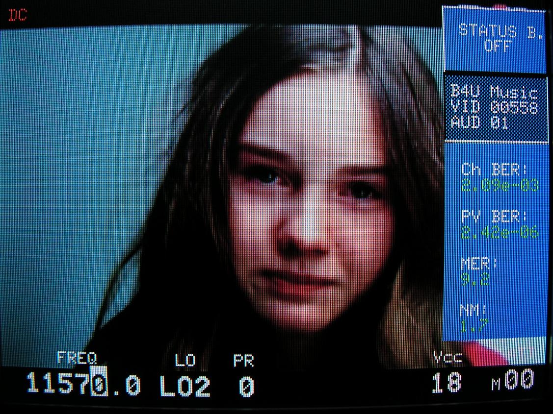 of reception follows.Average reception quality, expressed in the unit MER=9.5-11.5 dB (with occasional peak at MER=15+ dB)