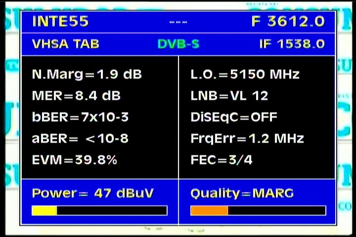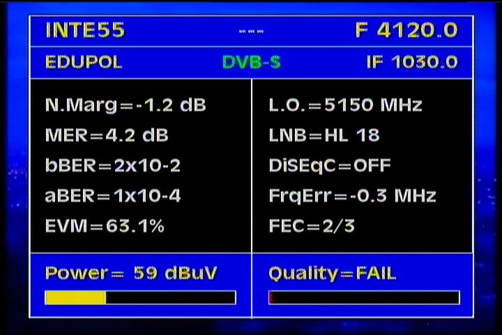 on the packet RPP at f=3 670 MHz .Threshold level required to identify the carrier at FEC 2/3 is the MER=3 dB .