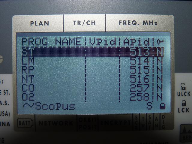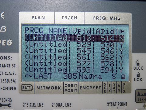 ---SR--- | ---FEC--- | ---Footprint--- | ---Antenna--- | ---Video/Encryption--- |