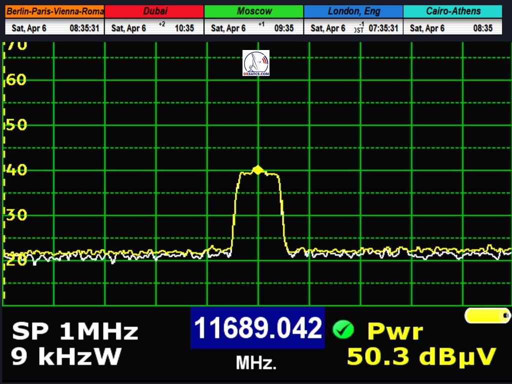 na danej frekvencii f=11 689,042 MHz_V nevysiela,uverejňujem najaktuálnejšie výsledky z monitoringu rádio nosnej z dnešného dňa