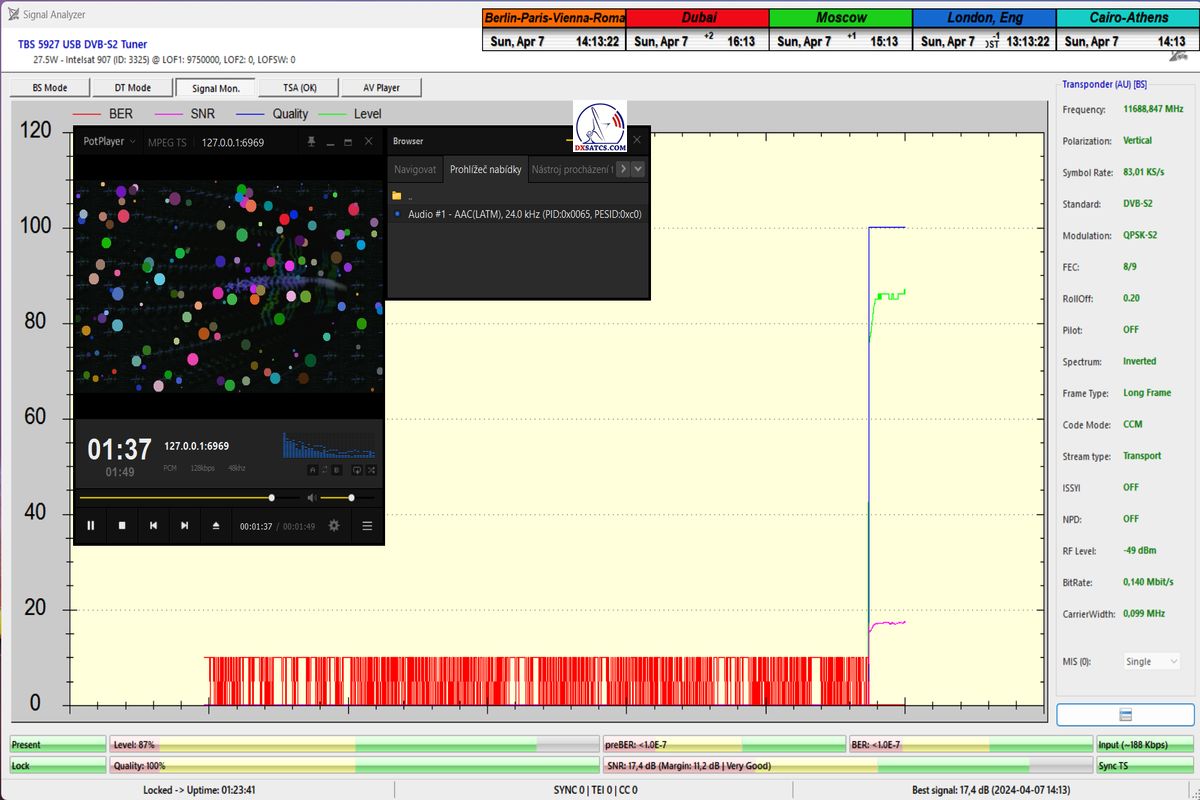 dokáže že HW/SW konfigurácia PC karty TBS 5927 a programu EBSpro umožňuje dosiahnúť dokázateľne stabilný príjem aj tých najnižších Symbolových