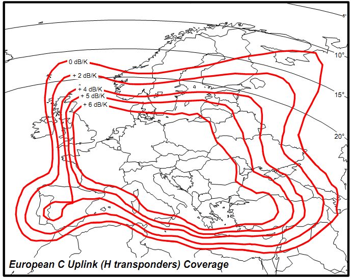 Eutelsat 7A-W3A-KA band : Europe C uplink and downlink coverage