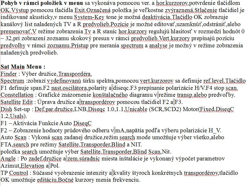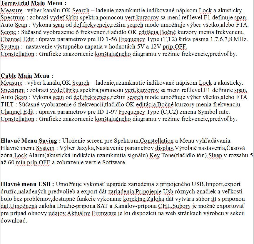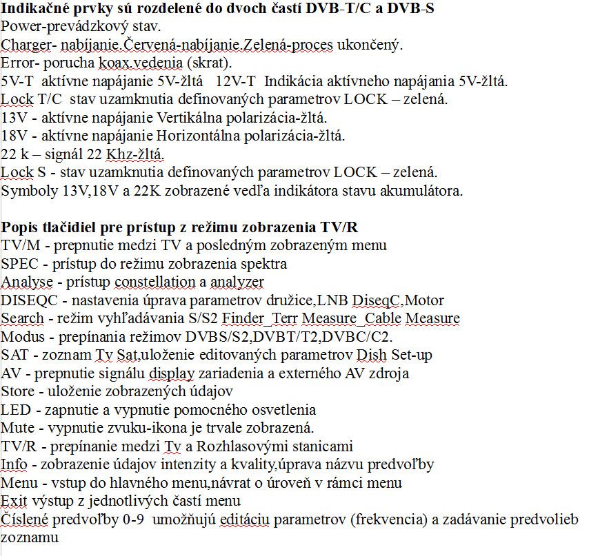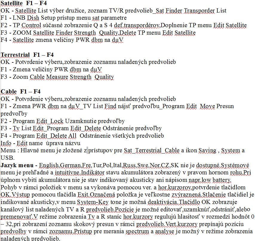 ►Prevádzkový čas v Sat kombinovanom režime-finder,spektrum,constellation,tp control,video do úplnej straty hodnoty akumulátora je  4 hod.