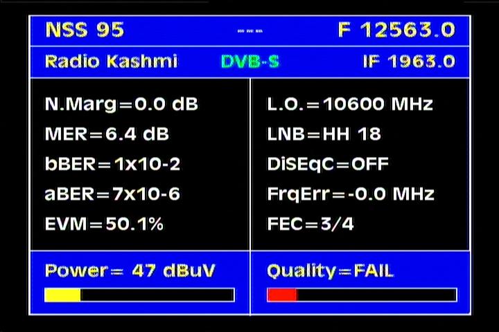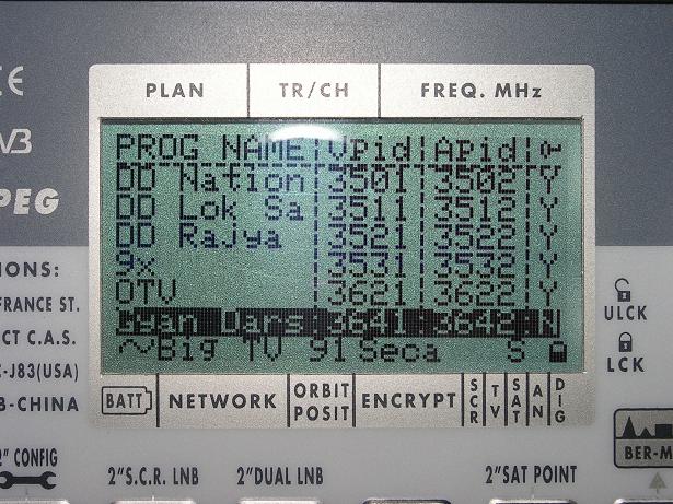 Measat 3 at 91.5°E-KU South Asia beam:MPEG-4 Big TV_V+H spectral scanning & ULPC beacon frequency