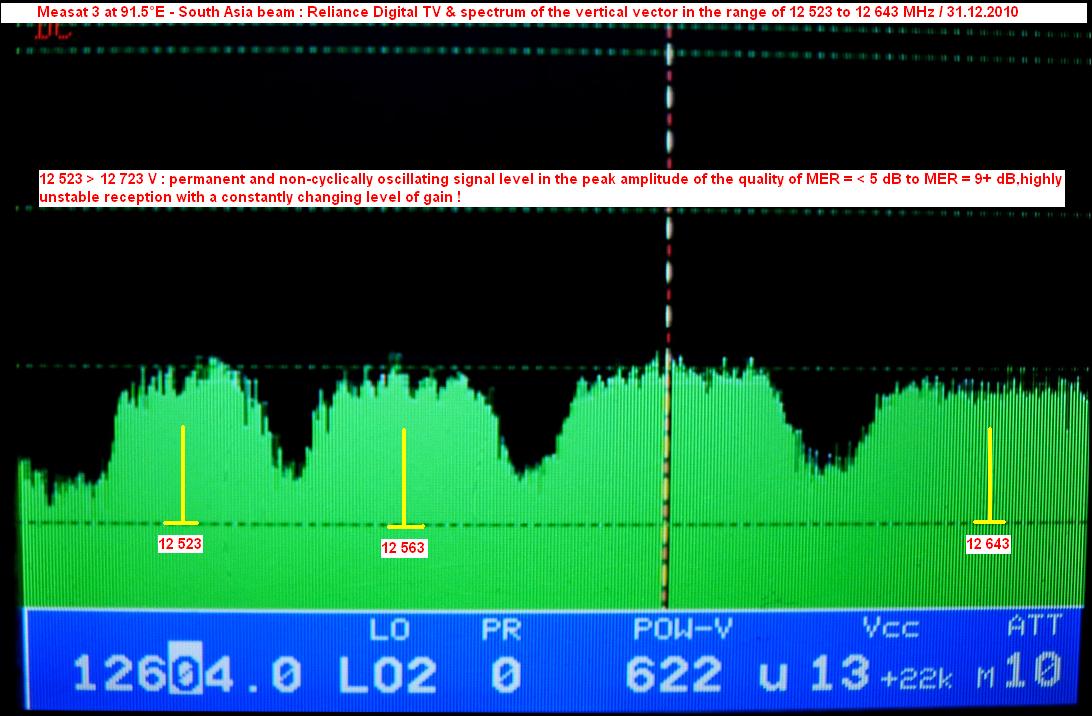 Measat 3 at 91.5°E-Reliance Digital TV : identification of the satellites in orbit by ULPC Beacon -f-