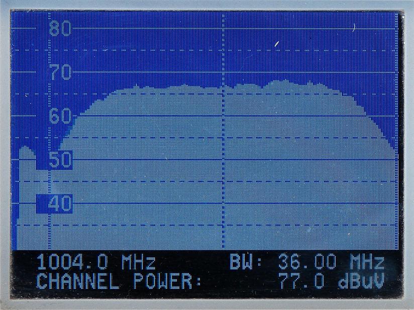 ekvivalentných ziskových hladín antény v celom orbitálnom rozsahu 40° (pri teoretickom predpoklade rovnakej hladiny príchodzieho