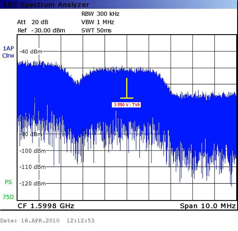 Insat 2E at 83.0°E - Asian footprint : 3 550 V TV9 Telegu _ spectral analysis with the analyzer Rohde & Schwarz ETL