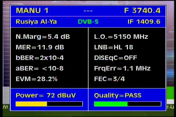 Channel Power                                                  C/N                                                  quality table