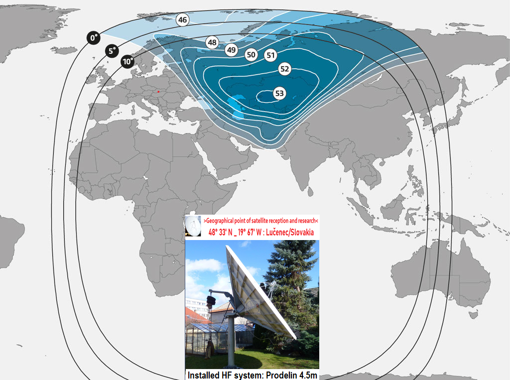 poznámka : stabilný model príjmu z frekvencií f=11 585 H + 11 610 H v diagrame Stredná Ázia bol potvrdený v niektorých regionóch prevažne severnej a východnej Európy