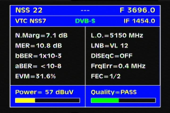 NSS 7 at 22.0°W - East Hemi footprint : 3 696 R VTC repeated sign non stop