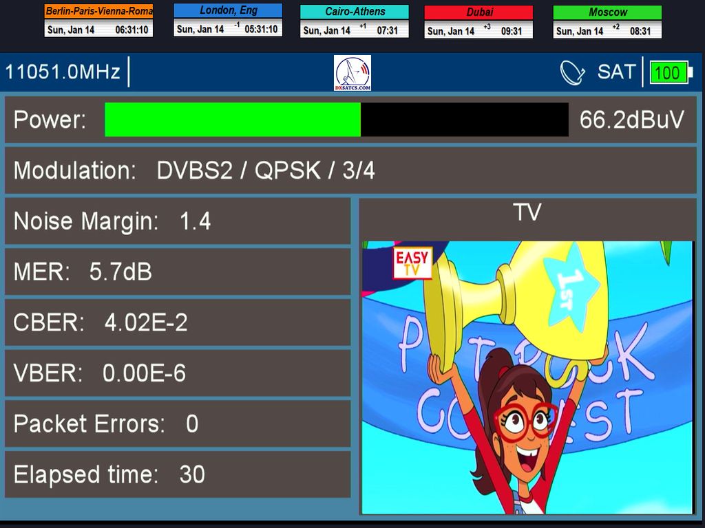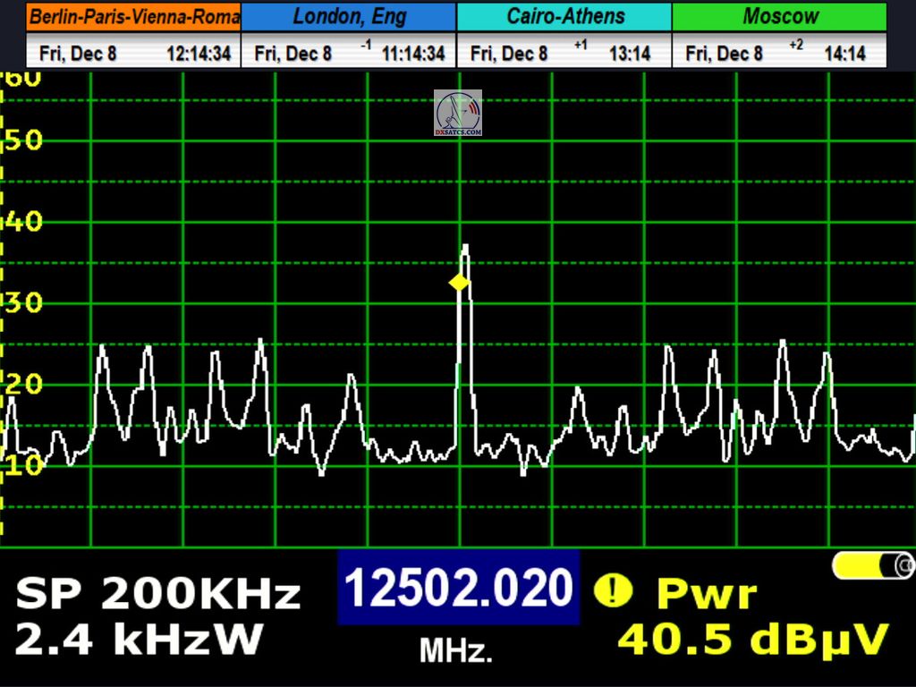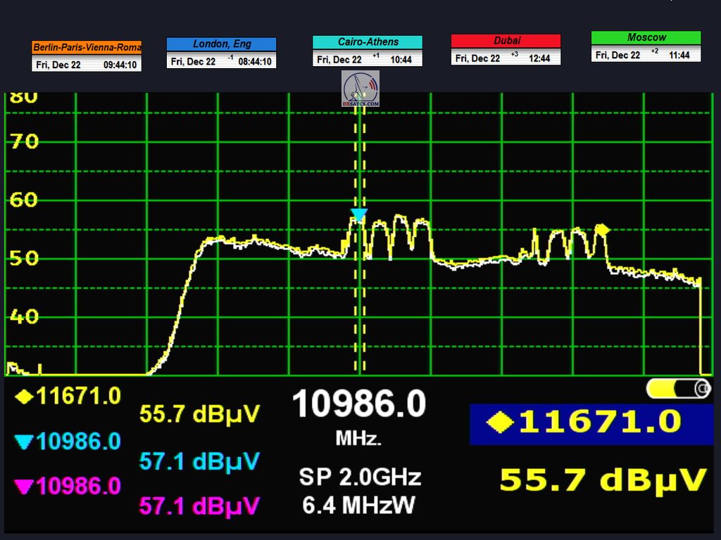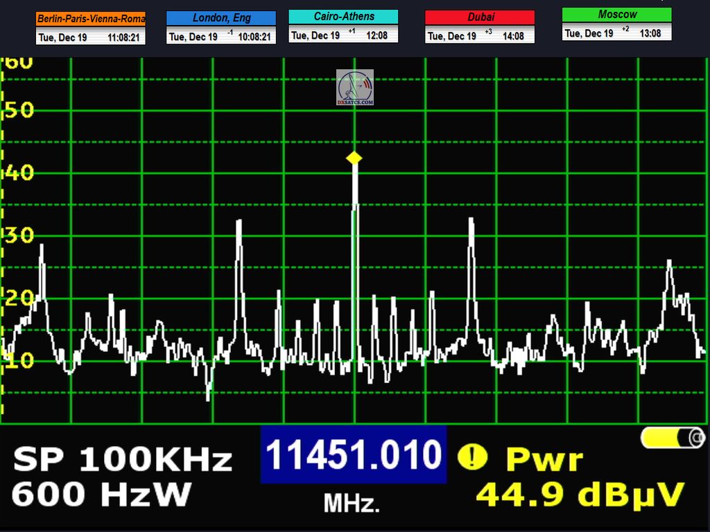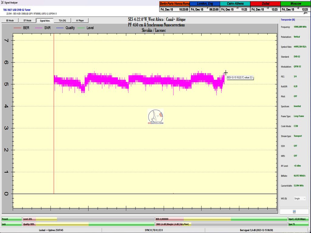 DE_Canal+ Afrika_Roman Dávid aus Lučenec ist der Erste in Europa, der unbestreitbar einen konstanten LOCK bei zwei Frequenzen f=11,051+11,111 MHz,erreicht hat.Diese Leistung umfasst das Aufrechterhalten eines konstanten Nullfehlerratenzustands BER=0,0000000 während der gesamten 72 stündigen Überwachungsverifizierungseinheit, jedoch ausschließlich auf der Frequenz f=11,111 MHz. Die vom Autor durchgeführte Forschung findet in der geografischen Region Mitteleuropa mit einem Reflektordurchmesser (D) von 450 cm statt.