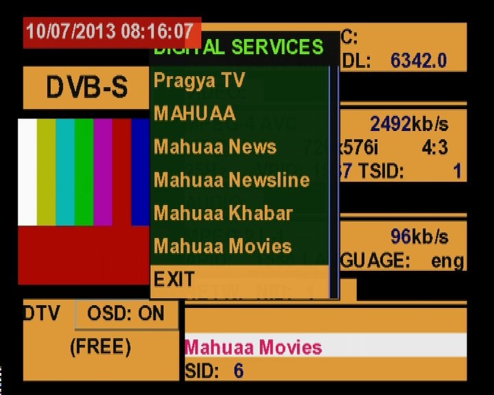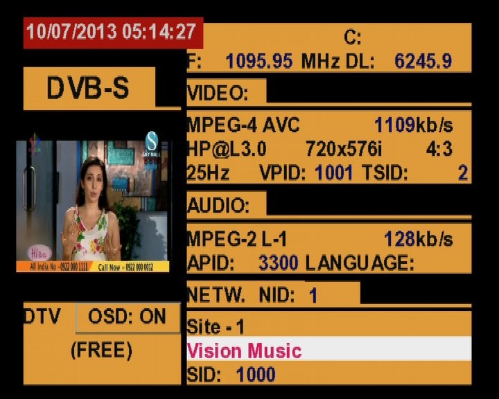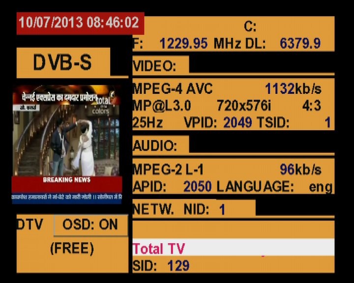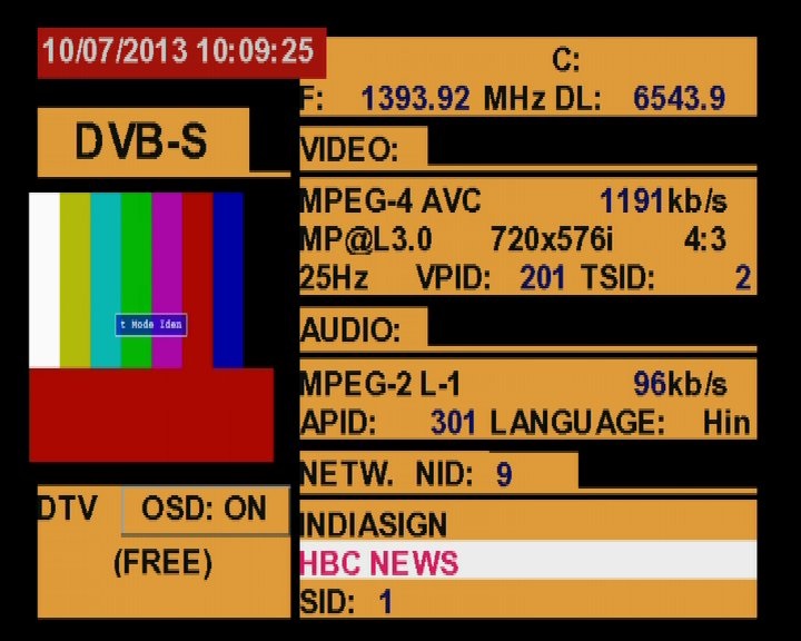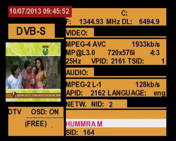 4 087 H @ 1 062.70 MHz @ SPAN 50 MHz : 83°E Live India![]()