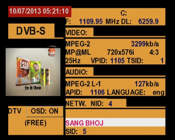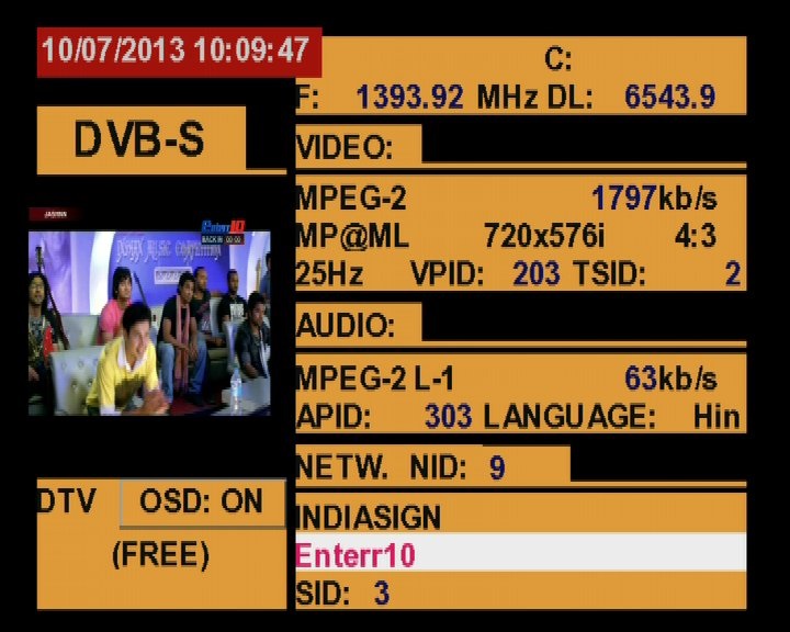 4 040 H @ 1 109.95 MHz @ SPAN 50 MHz : 83°E Essel Shyam![]()