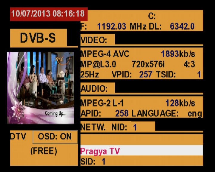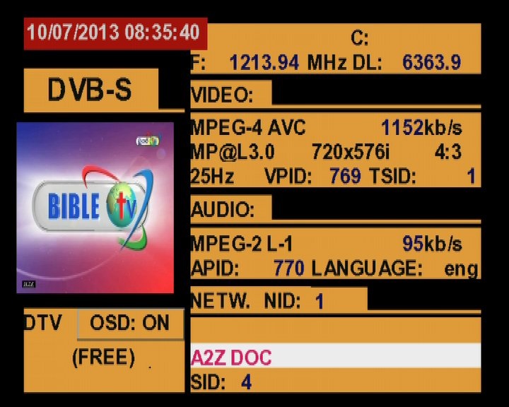 3 936 H @ 1 213.94 MHz @ SPAN 50 MHz : 83°E INX netw.![]()