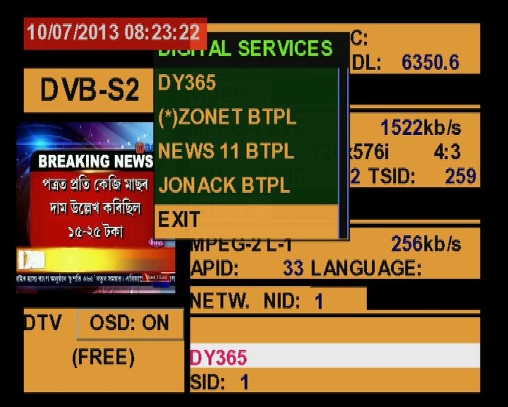 4 115 H @ 1 035.94 MHz @ SPAN 50 MHz : 83°E Manorama news![]()