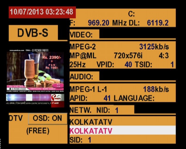4 180 H @ 969.20 MHz @ SPAN 50 MHz : 83°E Kolkata TV![]()